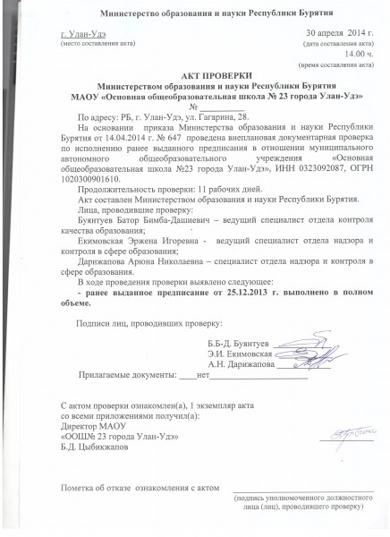 Предписания органов, осуществляющих государственный контроль (надзор) в сфере образования, отчеты об исполнении таких предписаний (при наличии)
